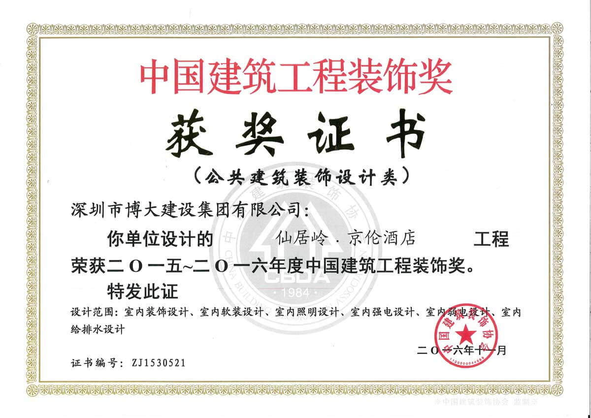 中國建筑工程裝飾獎(仙居嶺.京倫酒店-設(shè)計)