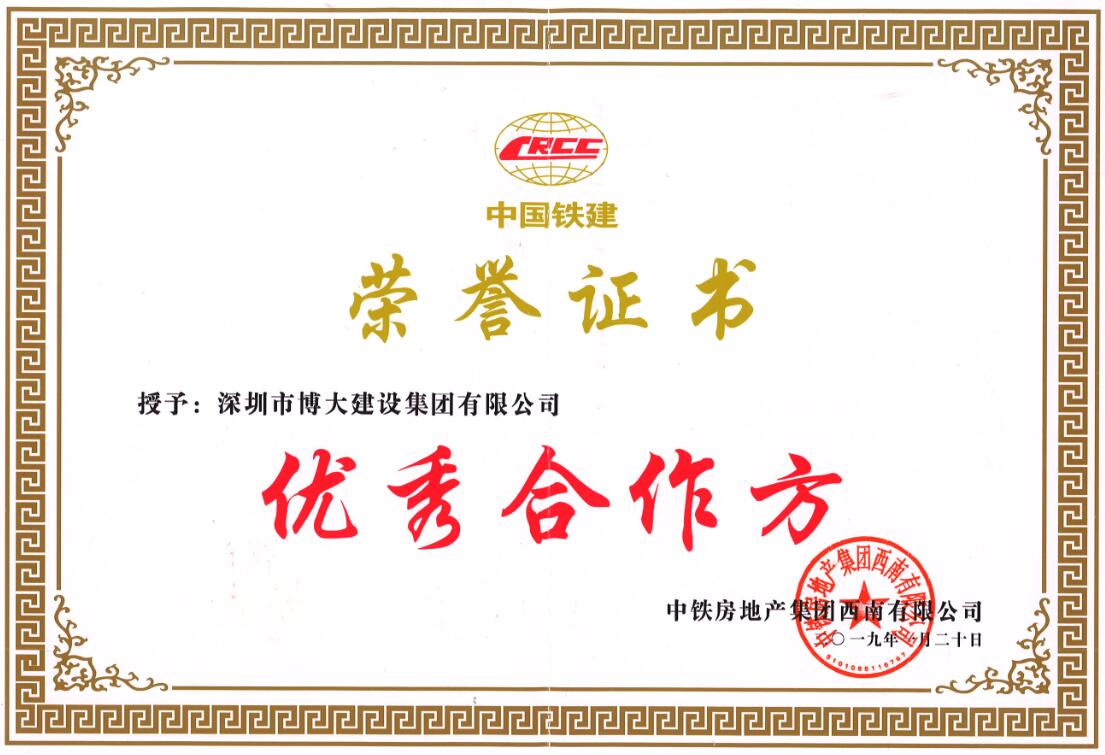 博大建設(shè)集團(tuán)以優(yōu)秀的工程質(zhì)量和準(zhǔn)時(shí)交期,協(xié)助中國鐵建奠定了西派國樾精裝大平層的品牌效應(yīng),榮獲中國鐵建優(yōu)秀合作方。