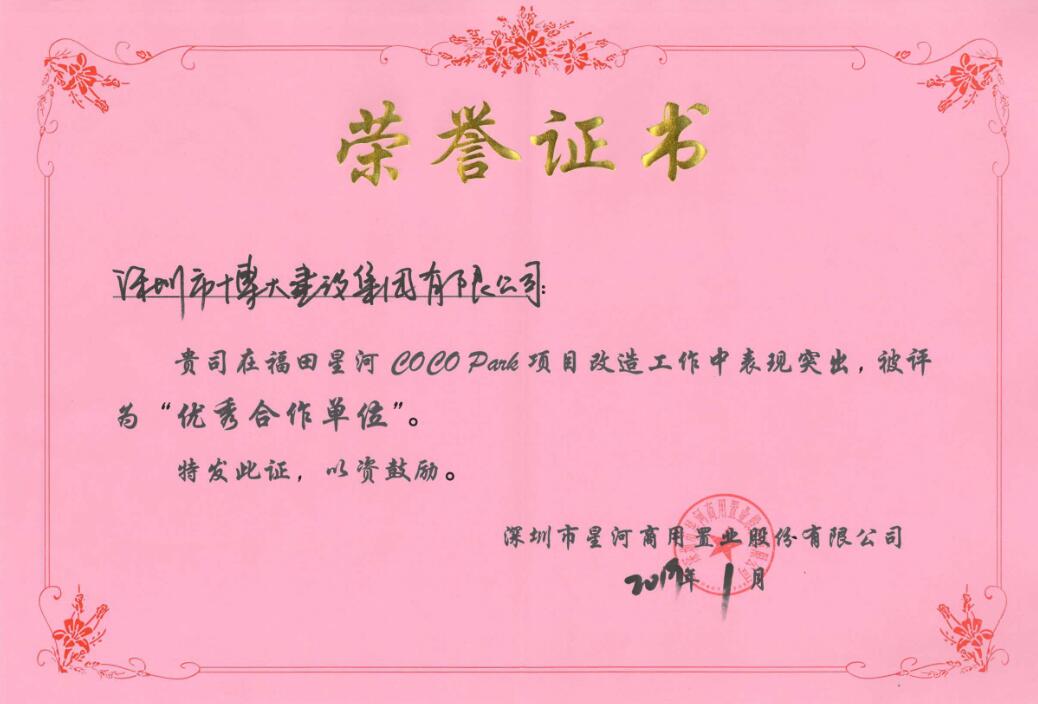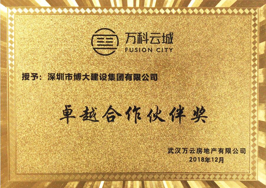 裝飾與幕墻平分秋色,博大建設(shè)集團(tuán)憑借過硬的工程質(zhì)量、嚴(yán)格的工期保障、全心全意的服務(wù),與招商蛇口建立了長期合作關(guān)系,裝飾類和幕墻類同時(shí)榮獲招商蛇口“2018年度優(yōu)秀新供應(yīng)商獎(jiǎng)”。