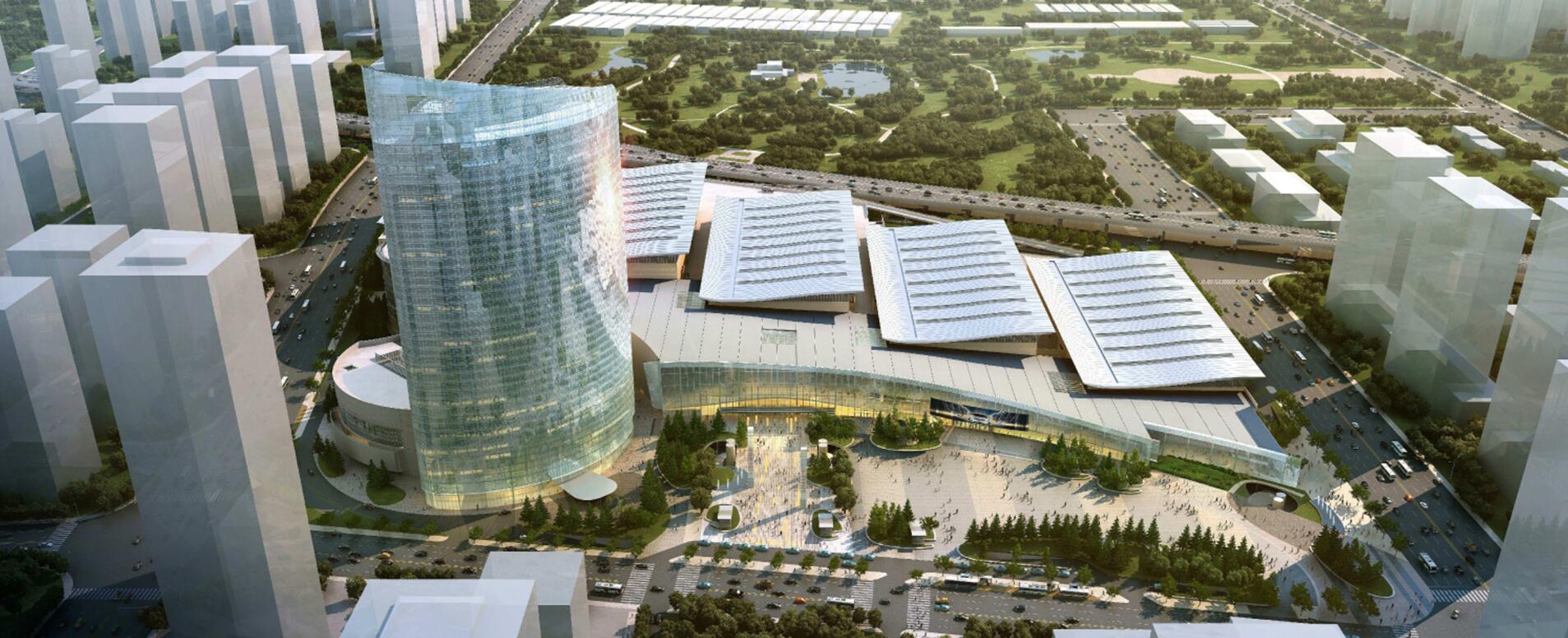 濟南西部會展中心位于濟南市槐蔭區,濟南西部新城核心區,東至二環西路、西至濱州路、南至日照路、北至威海路,交通便利。項目可規劃用地約332畝,總建設面積約55.5萬平方米,其中地上建筑面積約37.5萬平方米,地下建筑面積約18萬平方米。